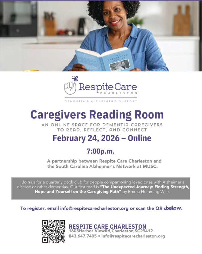 Caregivers Reading Room- An online space for dementia caregivers to read, reflect, and connect. A partnership between Respite Care Charleston and the South Carolina Alzheimer’s Network at MUSC.