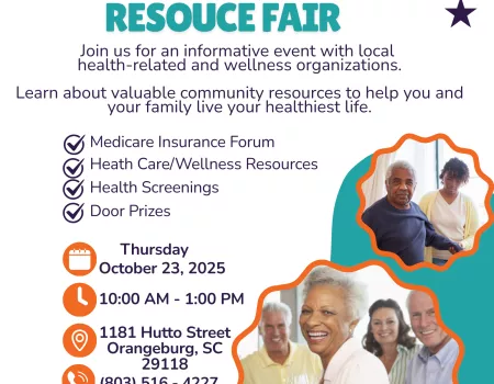 Date:Address:1181 Hutto Street Orangeburg, SC 29118Details:Education / GuidesHealth / SafetyClemson Health Clinic at Orangeburg & WellCare invites you to join the upcoming Senior Jamboree Resource Fair on Thursday, October 23, 2025, from 10 a.m. to 1 p.m. at 1181 Hutto Street Orangeburg, SC...
